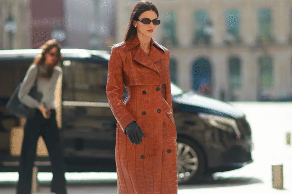 Không có phụ kiện nào toát lên nét “sang trọng kín đáo” rõ nét như găng tay da. Chất liệu da tạo nên sự đối lập thú vị khi kết hợp với len và dạ, khiến set đồ trở nên cá tính hơn. Thay vì chỉ chọn găng tay đen, những màu nâu trầm, đỏ burgundy hay cam đất lại càng nổi bật trong những ngày đông xám lạnh. Chỉ một chi tiết tinh tế như đôi găng tay hờ hững lộ ra từ phía trong áo khoác cũng đủ nâng tầm phong cách cho bộ trang phục giản đơn.