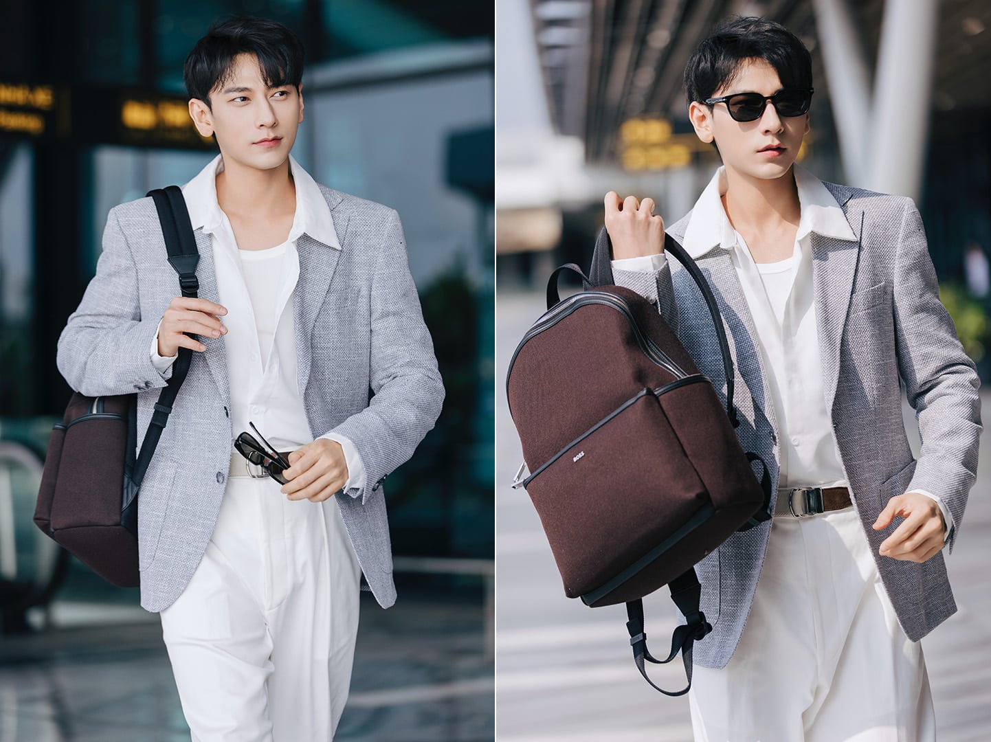 Phụ kiện đi kèm như ba lô vải canvas thiết kế gọn gàng và kính râm tối màu góp phần hoàn thiện hình ảnh quý ông năng động. Sự kết hợp giữa yếu tố thanh lịch và tính linh hoạt cho thấy cách Isaac linh hoạt thích nghi với môi trường thời trang quốc tế, đồng thời khẳng định dấu ấn cá nhân khi đồng hành cùng BOSS tại một trong những sự kiện quan trọng của mùa mốt năm nay.