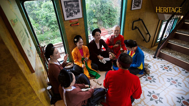 Mỗi toa tàu được đặt tên theo những cửa ô cũ: Ô Quan Chưởng, Ô Cầu Dền, Ô Đống Mác, Ô Cầu Giấy, Ô Chợ Dừa. Những cái tên giản dị mà gợi nhắc cả một quá khứ Thăng Long nghìn năm. Trên hành trình ấy, tiếng quan họ bỗng ngân lên, xen lẫn điệu xẩm dịu dàng. Cùng với chén trà sen, miếng cốm dẻo thơm, trải nghiệm trên tàu trở thành sự hòa quyện của vị giác, thính giác và thị giác.